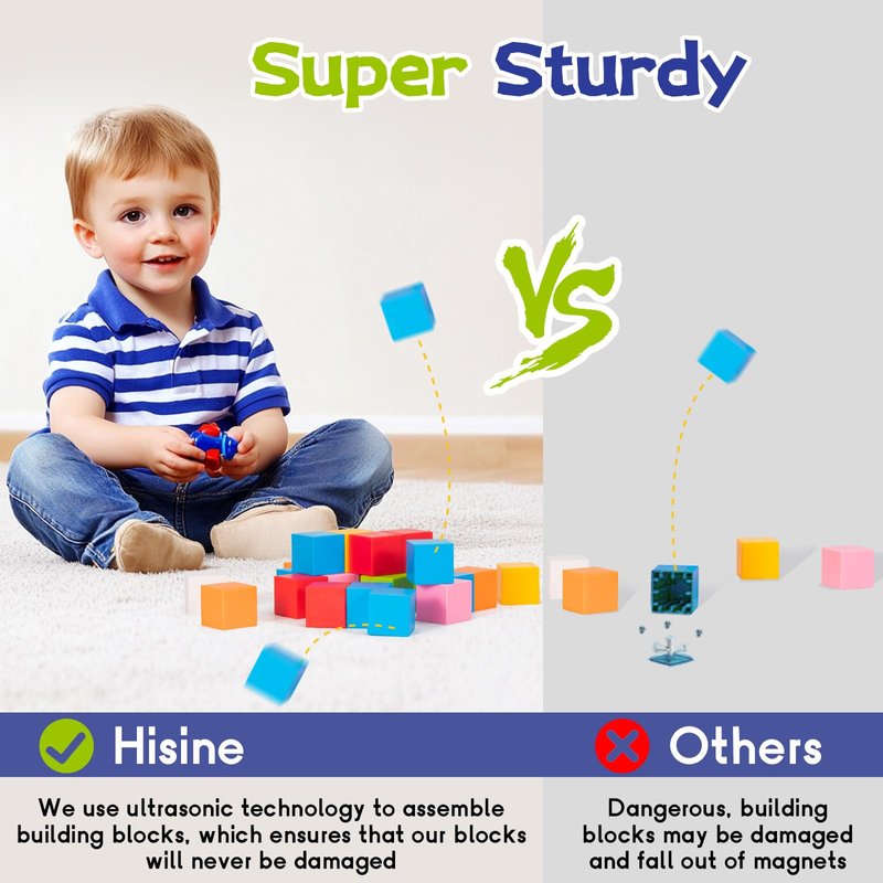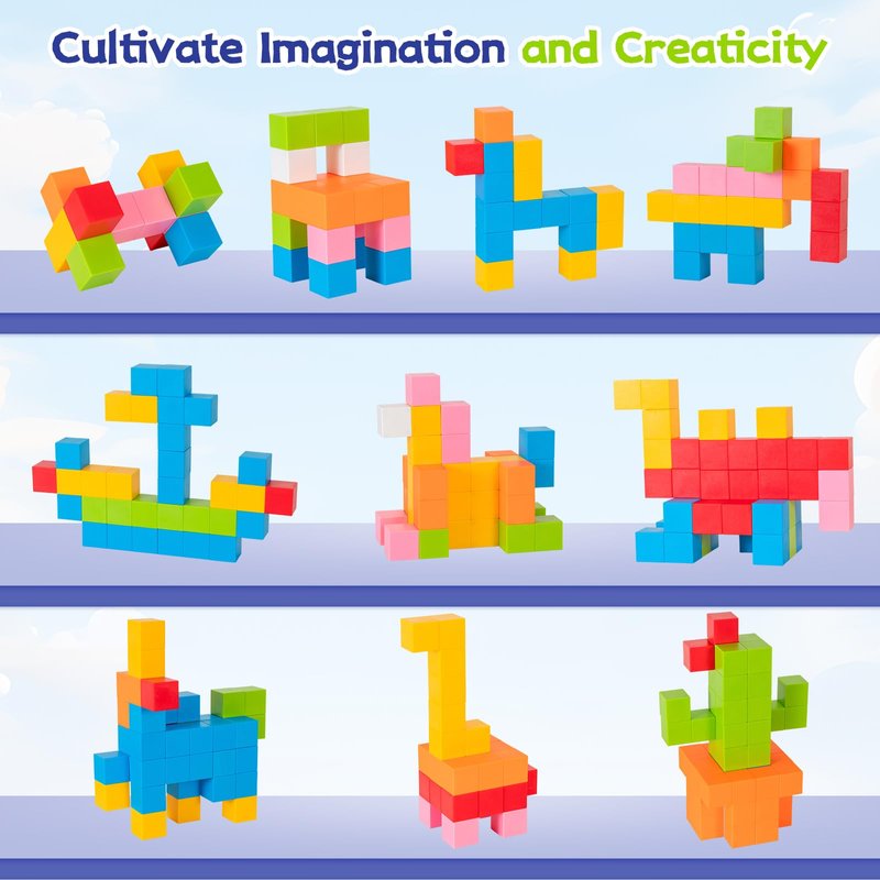 【Perfect Size】The magnetic building block is 1.22 inches, which is a very suitable size for toddlers. This size is large enough to prevent kids from swallowing the building blocks, ensuring their safety. At the same time, it should not be too big for kid's small hands to control 【STURDY & SAFETY】The magnetic blocks is bonded using ultrasonic technology. Durable and sturdy, it won't break, so you don't have to worry about the magnet scattering. Magnetic building blocks are made of non-toxic ABS material with smooth edges, so you don't have to worry about kids getting hurt 【STEM Learning Magnetic Blocks】Magnetic block STEM toys suitable for kids aged 1-8. Let kids learn science, technology, engineering and mathematics while playing. Provide fun and perfect education for school-age kids. Never outdated. Very good parent-child interactive toy 【Exercise Toddle Creativity】Multiple colors and quantities of magnetic building blocks. Enable kids to unleash unlimited creativity, from simple graphics to complex architecture. Let the kid's brain grow fully 【Great Gifts】The magnetic building block is suitable for boys and girls aged 1-8. All kids can derive pleasure from building blocks. Our building blocks are perfect as gifts for kids aged 1-8. Suitable for playing at home or outdoors