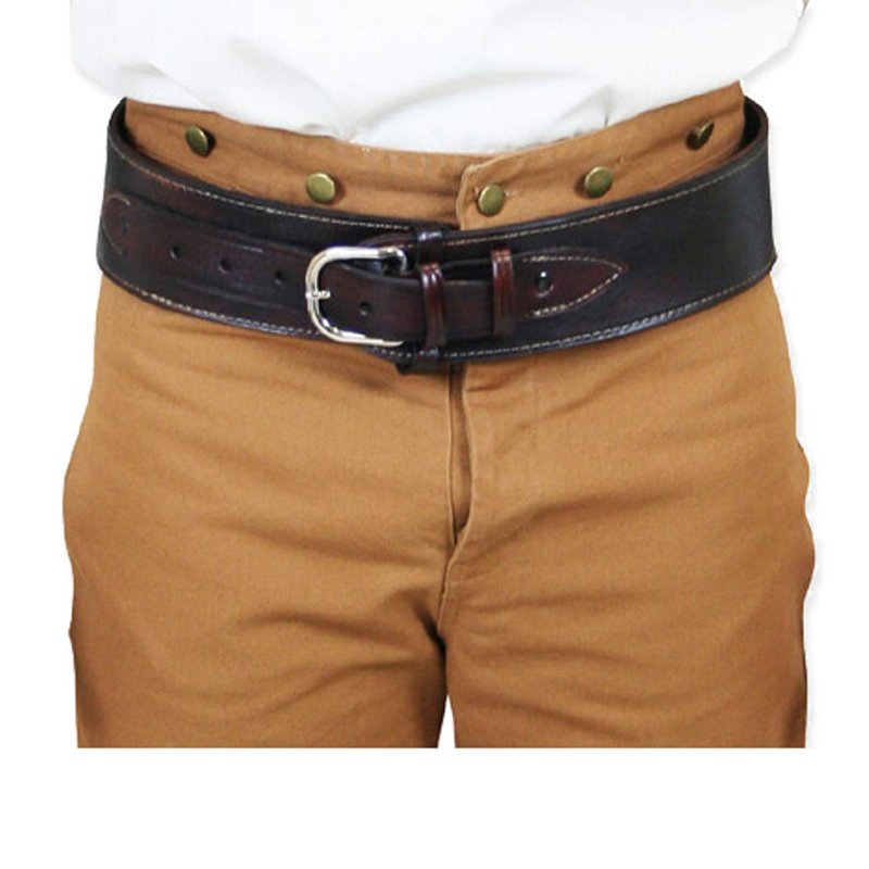 - Belt measures 3 inches wide and can accommodate most slide on holsters and is made of saddle grade leather, with durable stitching for long service. Heavy gauge silver tone belt buckle will keep your gun belt in place no matter how heavy your six-gun