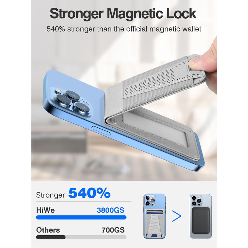 - 【Strong Magnetic Wallet Stand】The magnetic force is up to 3800 Gauss, 5x stronger than the official magnetic wallet, which ensures that your wallet stand stays securely on the back of your iPhone. No need to worry about the cards and cash falling off.