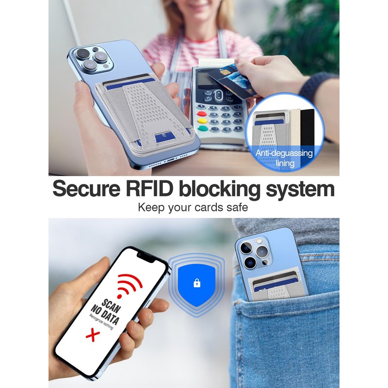- 【RFID Blocking】 Hiwe for magsafe card holder is equipped with advanced RDIF blocking technology, which can block 13.56 MHz or higher RFID signals and keep your credit cards safe from unauthorized scanners and provides degauss protection for your cards to prevent demagnetization.