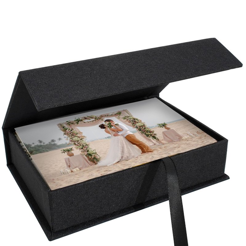 Hiwhy Photo Storage Box 4x6, Linen Photo Box, Memory Box Perfect to Store Your Photo, Pictures, Certificates, Scrapbooking Supplies, Keepsakes and Jewelry Black
