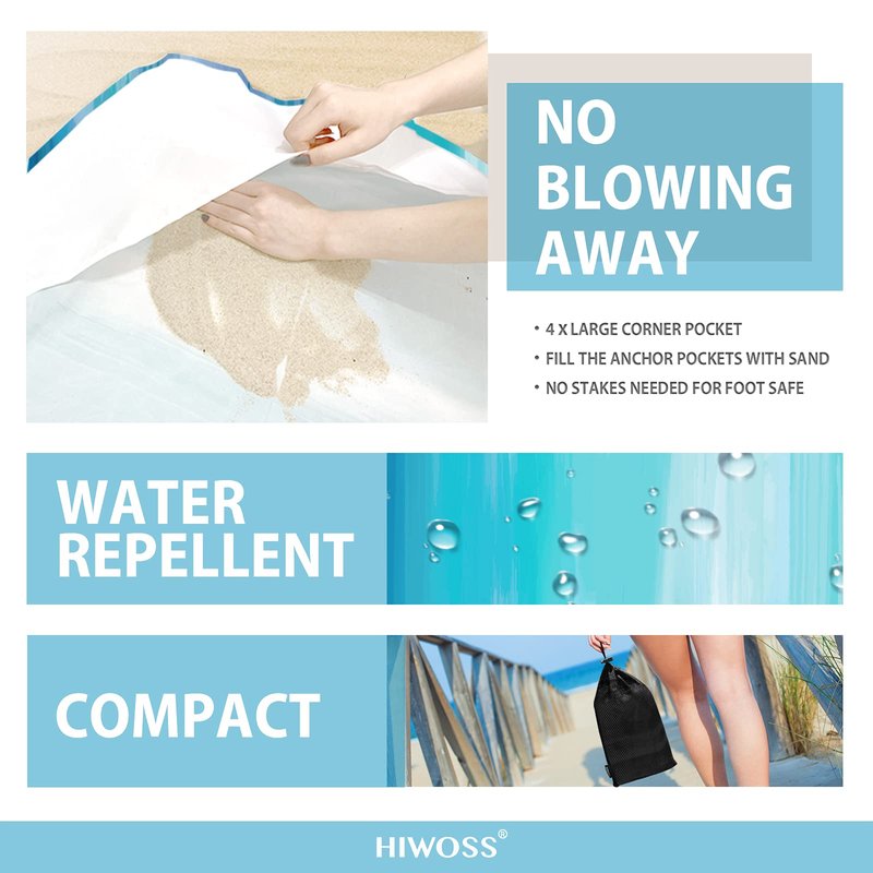 Hiwoss Beach Blanket Waterproof Sandproof Oversized 95”x 80”,Sand Free Beach Mat with Corner Pockets,Portable Mesh Bag for Beach Festival,Picnic,Travel and Outdoor Camping (DreamSea)
