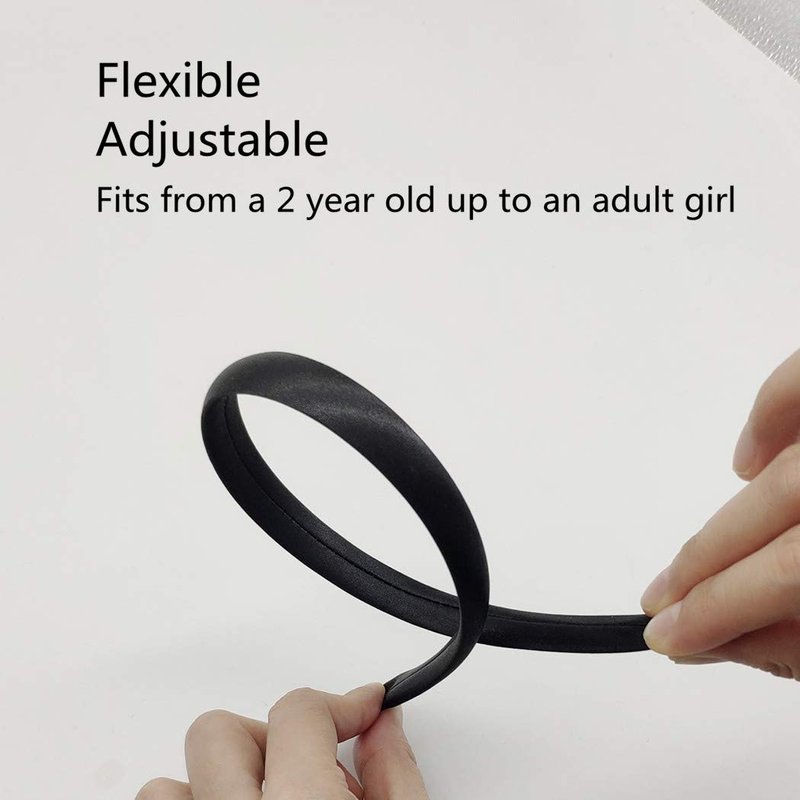 - Headband size: width 15mm.They are flexible and adjustable, you can bend them to custom fit and not be too loose or too tight,fits from a 2 year old up to an adult