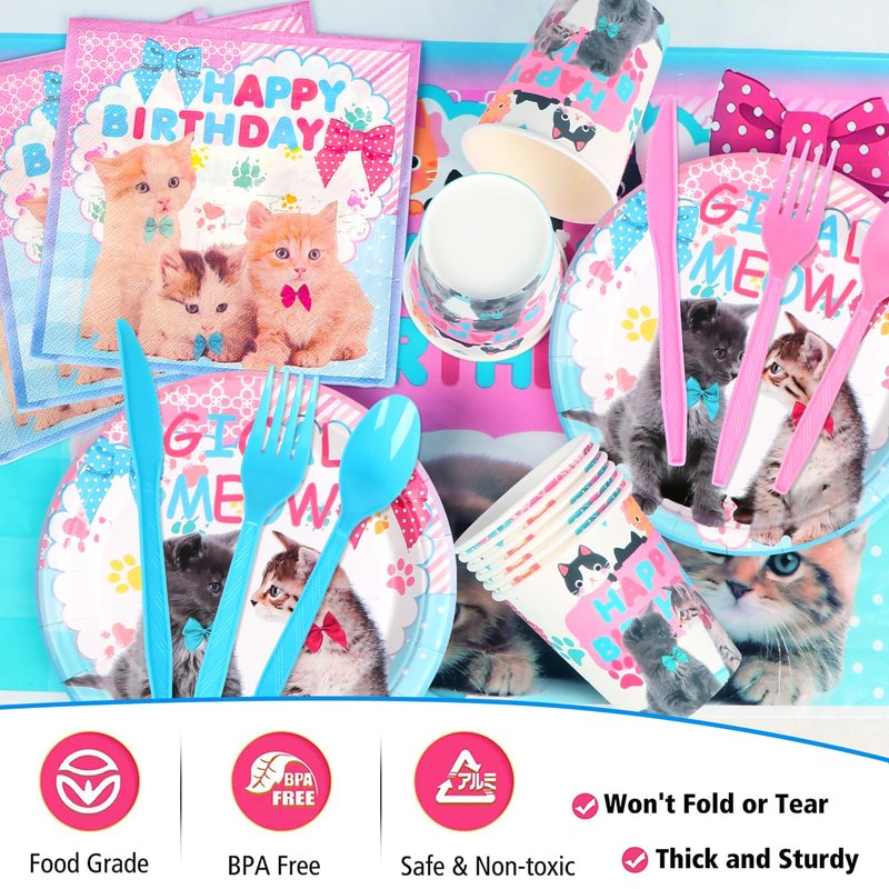 - 【Wide Application】Rich party supplies to satisfy all your cat's birthday party supplies needs. These cat birthday party supplies are suitable for cat parties, kitten parties, pet parties, kid's birthday parties, and get together, showers, picnics, home parties, festivals, catering, outdoor events, and so on