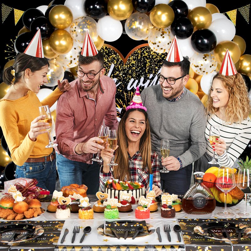 - 【High Quality Product】The farewell backdrop is made of quality polyester, very smooth and flat, waterproof and colorfast, and easy to clean, all paper products are made of heavy-duty paper, and are all printed with food-grade water-based ink which is suitable for food contact. The plastic tablecloth is spill-proofed and stain resistant, make it easy to clean up after the party. Different sizes balloons are made of natural latex, harmless and non-toxic, and safe to be play-around children