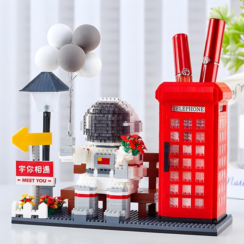 HJPLPXH Space Astronaut Micro Mini Building Block Set with Led Lighting Telephone Booth Kit Pen Holder Gifts for Adults and Kids (2188 Pieces)