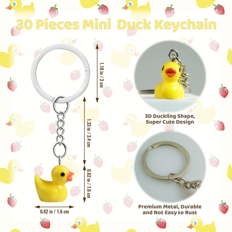 - 【30 Pieces Rubber Duck Keychain】Undoubtedly, here are 30 pieces duck keychain which provide you sufficient quantity for your party gift favors. Every cute yellow resin duck was designed to combine with stainless keychain ring. These duck keychains are not only exquisite but practical, as well as bring more possibility of decoration on your duck themed party.
