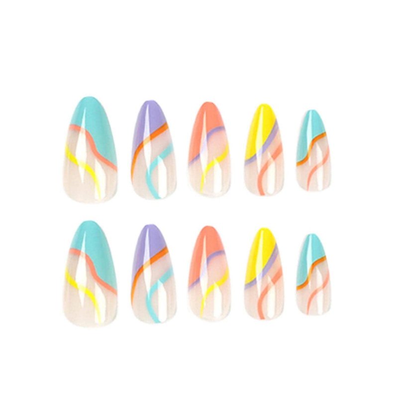 Hkanlre Almond Press on Nails Medium Swirl Fake Nails Acrylic Cute False Nails Full Cover Glossy Nails for Women and Girls 24PCS