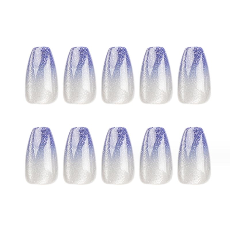 Hkanlre Bling Coffin Press on Nails Fake Nails Tips Full Cover Medium False Gradient Nails for Women and Girls 24PCS (Blue gradient bling)