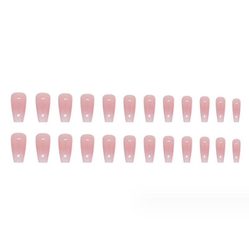 Hkanlre Bling Coffin Press on Nails Fake Nails Tips Full Cover Medium False Gradient Nails for Women and Girls 24PCS (Coffin pink)