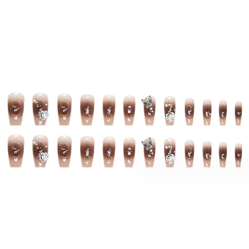 Hkanlre Coffin Press on Nails Flower Fake Nails Tips Full Cover Butterfly Medium False Nails for Women and Girls 24PCS
