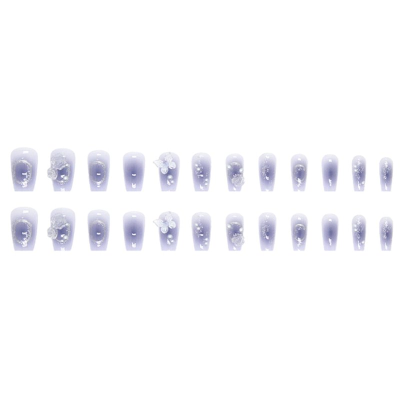 Hkanlre Press on Nails Purple Medium Fake Nails Tips Full Cover Gradient False Coffin Butterfly Nails for Women and Girls 24PCS