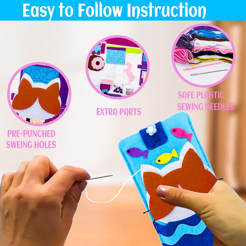 - π[What Your Kids Will Get] The kids sewing crafts come with a detailed manual and includes all the accessories you'll need. You can start sewing in home, classroom, in fact, anywhere. Pre-punched felt pieces can be easily sewed by your kids without a sewing machine!