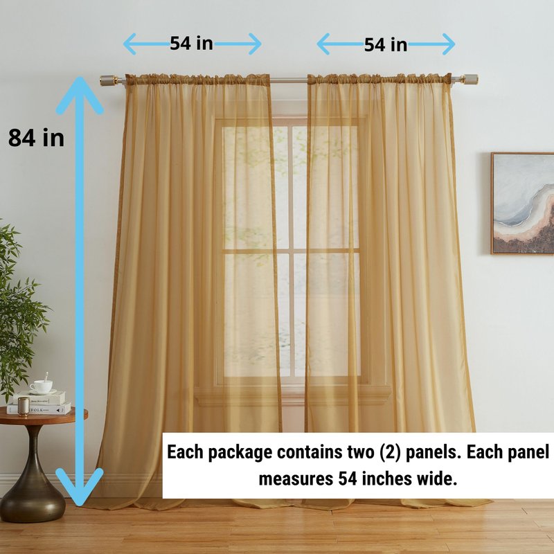 HLC.ME Gold Sheer Voile Window Treatment Rod Pocket Curtain Panels for Bedroom and Living Room (54 x 84 inches Long, Set of 2)