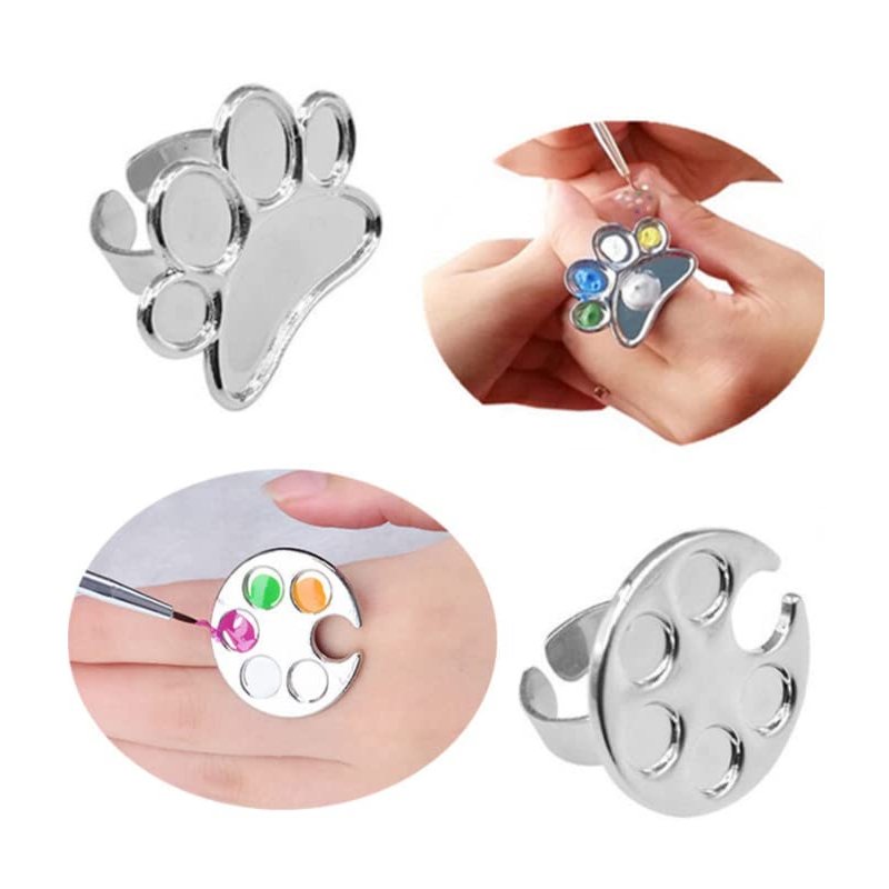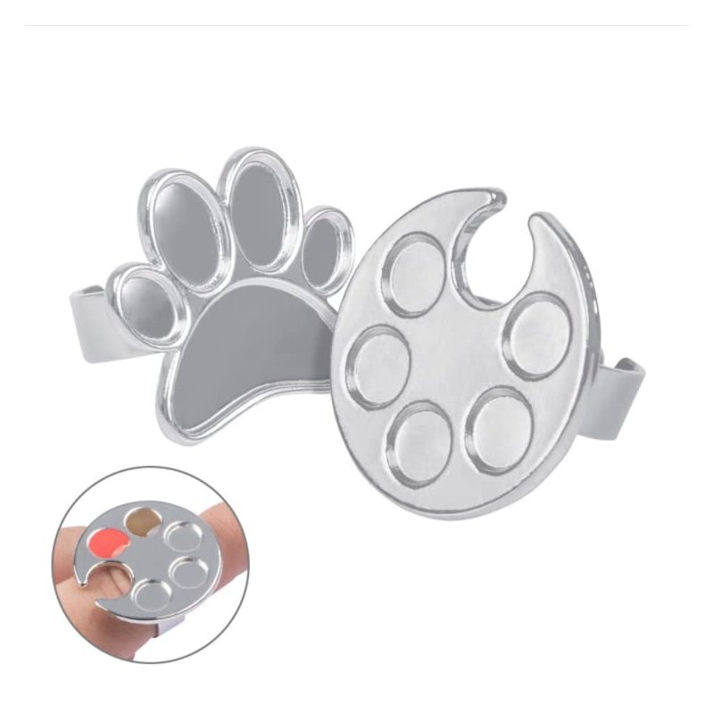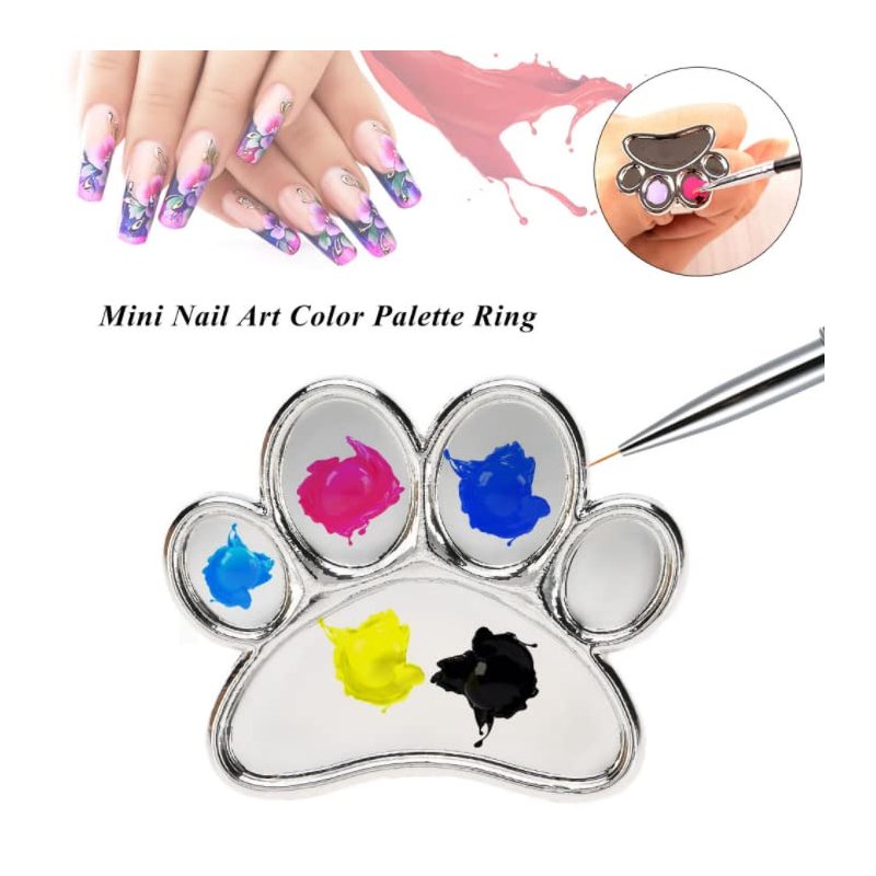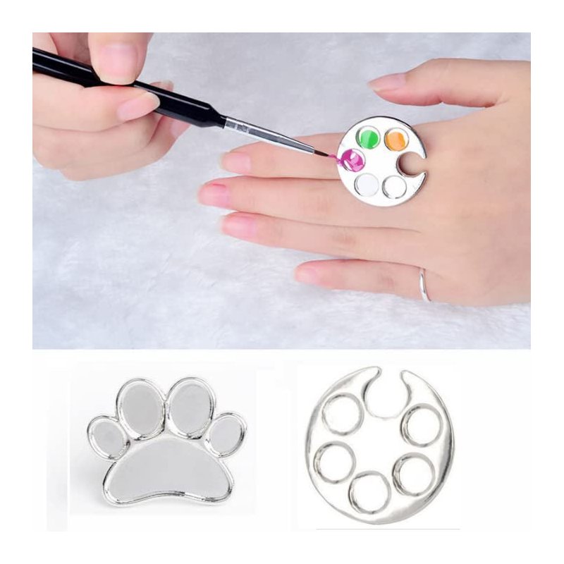 Painter's Blending Palette/Dog Paw,Both have 5 grooves for different colors. This nail art mixing color palette is made from quality material, sturdy, durable, safe to use. Specifications: Material: Alloy Color: Silver Size: as shown in the picture Package Including 2 x manicure mixing color board
