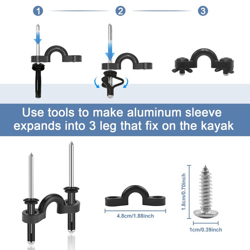 - 【Included Hardware】Come with 5 products, including 4 kayak carry handles,24 rivets with 24waterproof gaskets ringsenough , 12 C-shaped buckles and 16 Self Tapping Drilling Screws for you to use in kayaking, easy to be mounted at the side of the kayak.