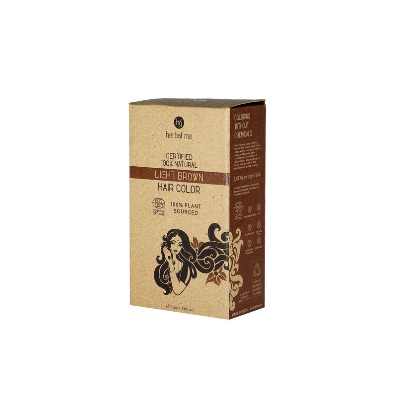 HM Herbal Me - Light Brown Henna Hair Color 200g,Certified 100% Natural by Ecocert Greenlife (France)