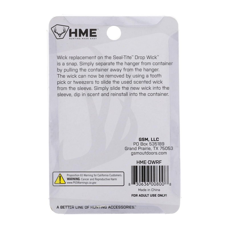 - COMPATIBILITY - Effective and quick-change, the scent holders are delivered in a pack of 6; These replacement wicks are intended for use with the redesigned HME Seal-Tite Drop Wick, the scent dispenser is sold separately