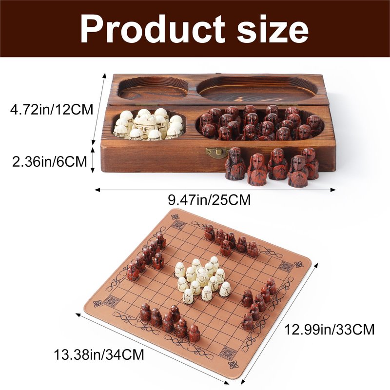 Hnefatafl Viking Chess Set Board Game Traditional Two-Player Strategy Board Game Intelligence Tabletop Tridimensional Chess Set Game Outdoor Adult/Child Travel Board Set (Hnefatafl Viking Chess)