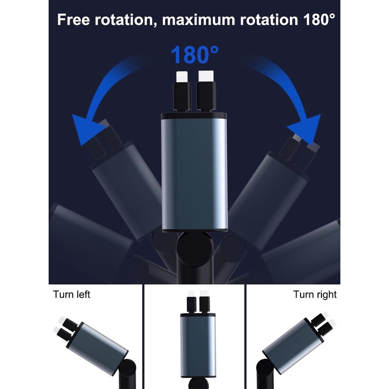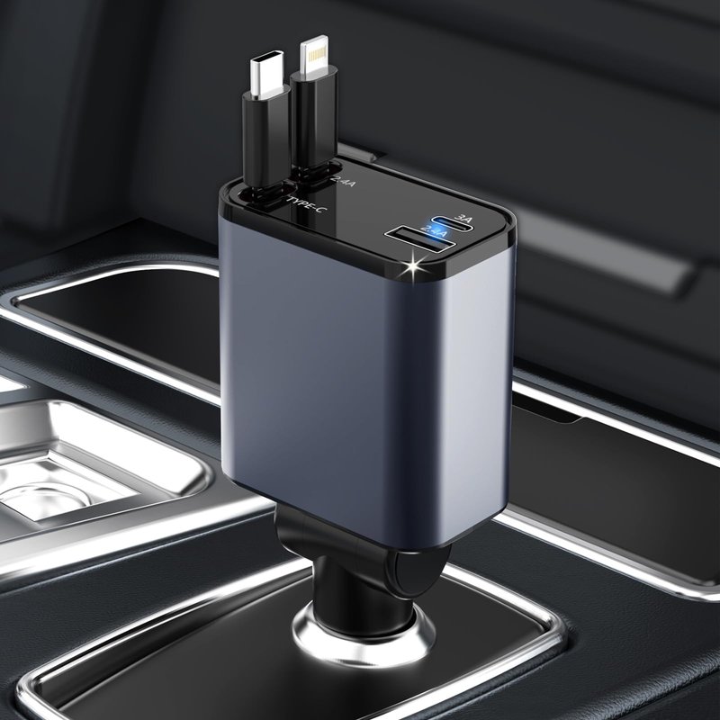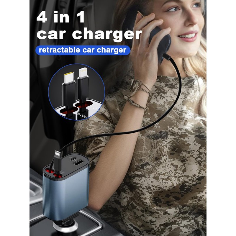 - Telescopic Charging Cable: The 4 in 1 retractable car charger features dual ports and two stretchable charging cables, Car charger USB C with USB-A and USB-C ports can work with all plug cables. It supports simultaneous charging of multiple devices, greatly improving the cleanliness of the car's center console and the convenience of travel
