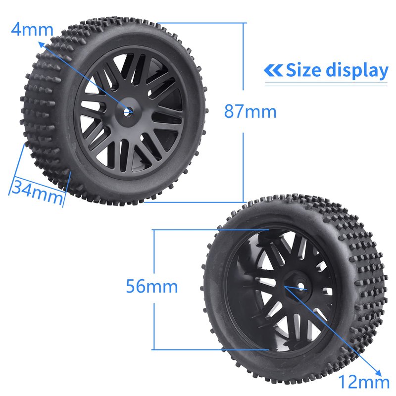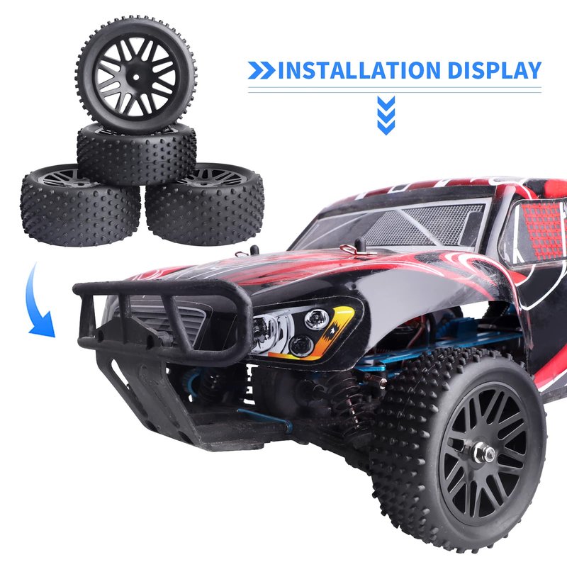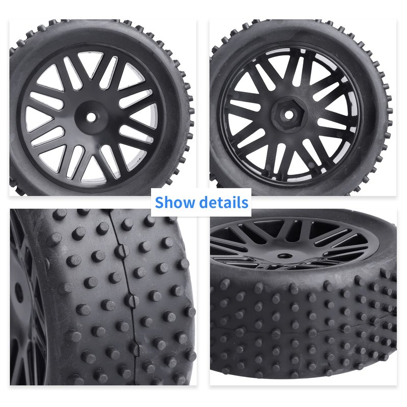 - ✔Material: Tires->Rubber; Wheel Rim->Quality Plastic (Note:Not Glued,Include foam inserts)
