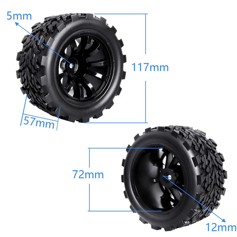 - ✔ Outer Diameter (Height): 4.6" (117mm) | Inner Diameter:2.83"(72mm) | Width: 2.24" (57mm) | Wheel hex size: 12mm | Axle Hole: 5mm