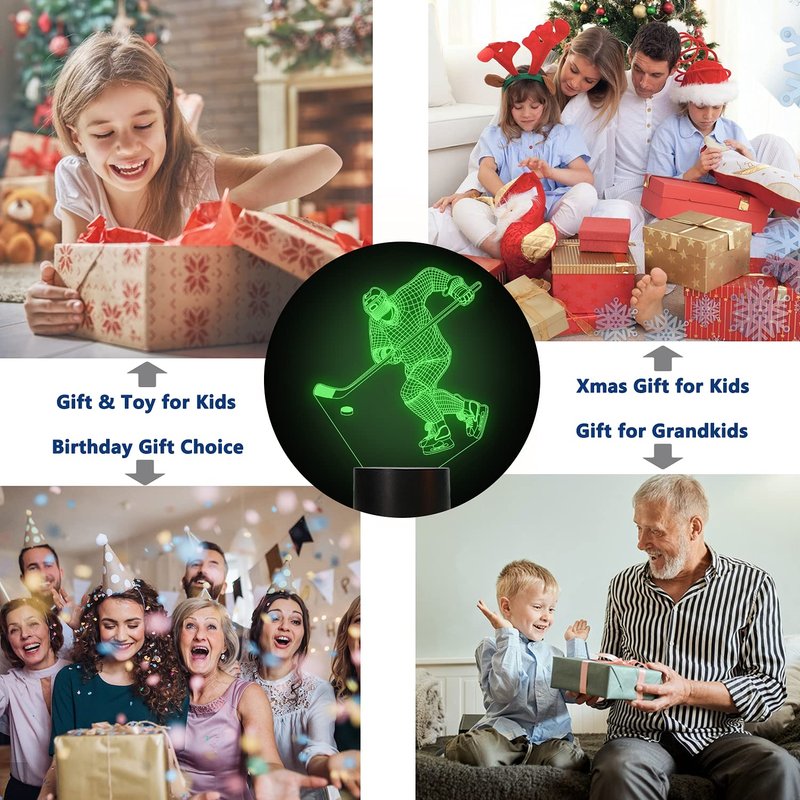 - Ideal Gift for Hockey Fans: Delight the hockey enthusiast in your life with this Ice Hockey Player 3D Lamp. Perfect for boys, men, and sports fans, this LED night light is a fantastic gift for birthdays, Christmas, or any special occasion. It adds a touch of sports-themed decor to any room and is sure to impress hockey lovers.