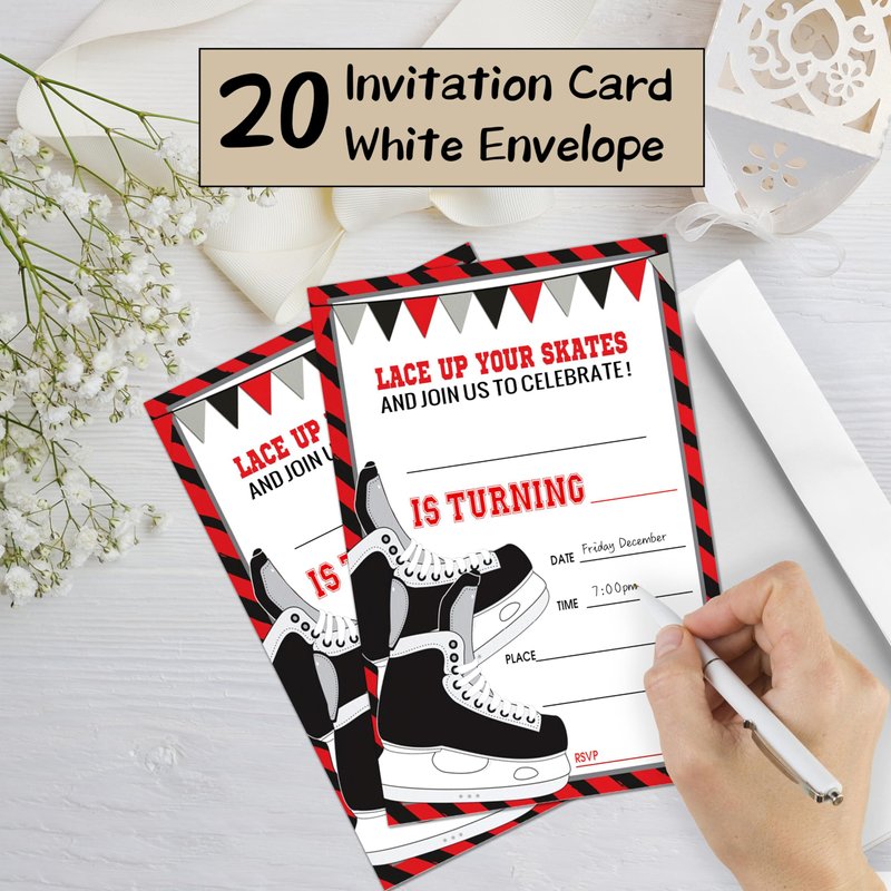 Hockey Style Fill-In Birthday Invites(4"x6"), Skates Birthday Invitations with Envelopes(20-Pack), Birthday Party Supplies for Boys & Girls, Teen, Kids-A05