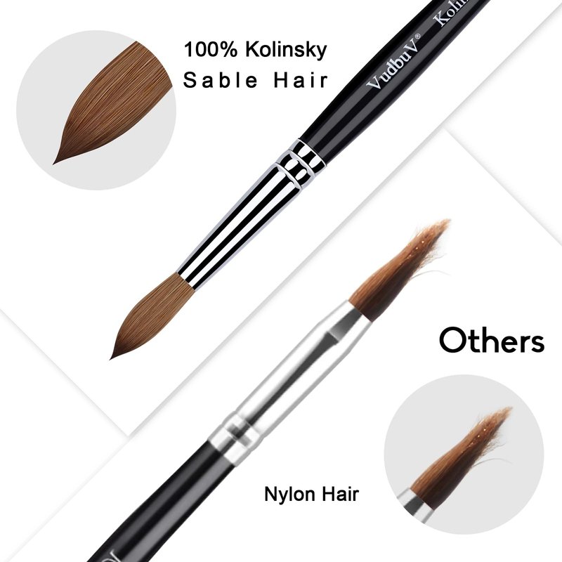 - Quantity: 1 Piece. Size: 8. HOFASON acrylic nail brush is made of true 100% pure Kolinsky sable hair. Our best quality bristles are softer, smoother, and more flexible, play the natural characteristics of animal hair, not only delicate and soft to the touch, solid and durable, and can evenly absorb the liquid, easy to apply.