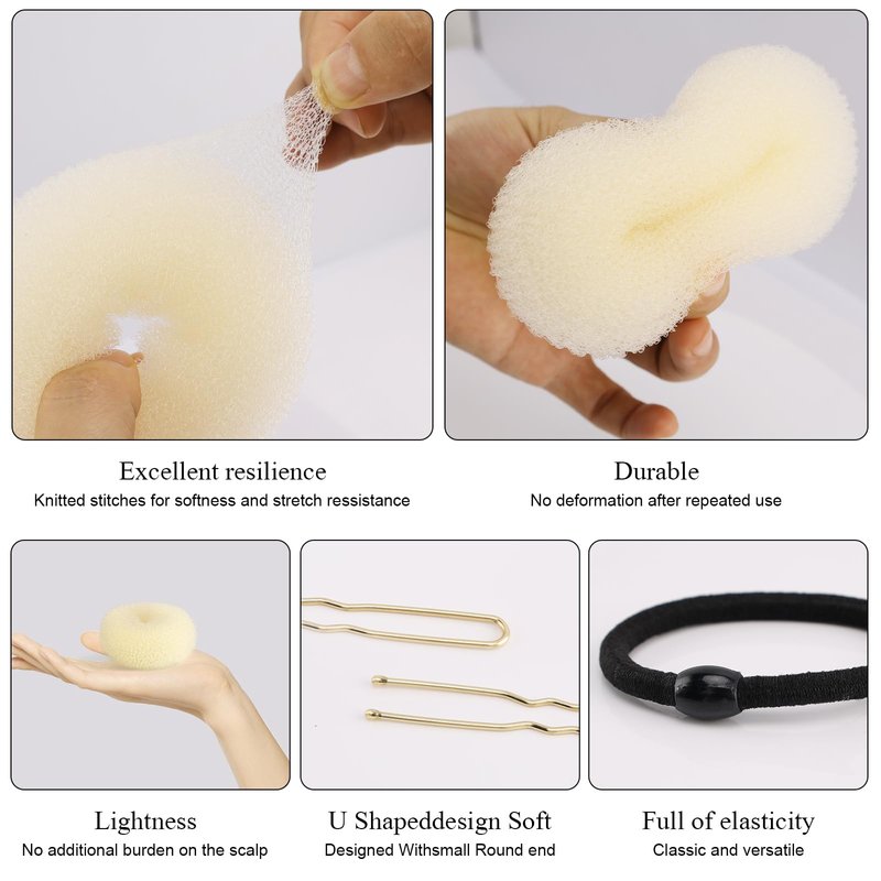 - 【Lightweight & Durable Material】With its design and high-quality sponge materials, it's the ultimate solution for creating elegant and neat buns. And these donut hair maker are lightweight and reusable, it won't add extra pressure to your head when you use it. You can take it with you or put it in your bag.