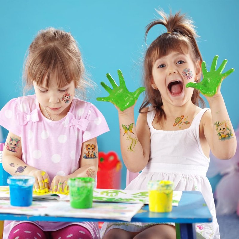 - 🎁【Value Party Accessory for Kids】Popular hit with the kids, These glitter animals temporary tattoos are perfect for a party! You can choose the pattern you like and create your own style. Great for birthday party, baby shower, animals theme party, children's day party gifts, etc.You can apply them to your body or some smooth objects, for example, glass, stationery, paper, crafts cups,cabinet,bottle.