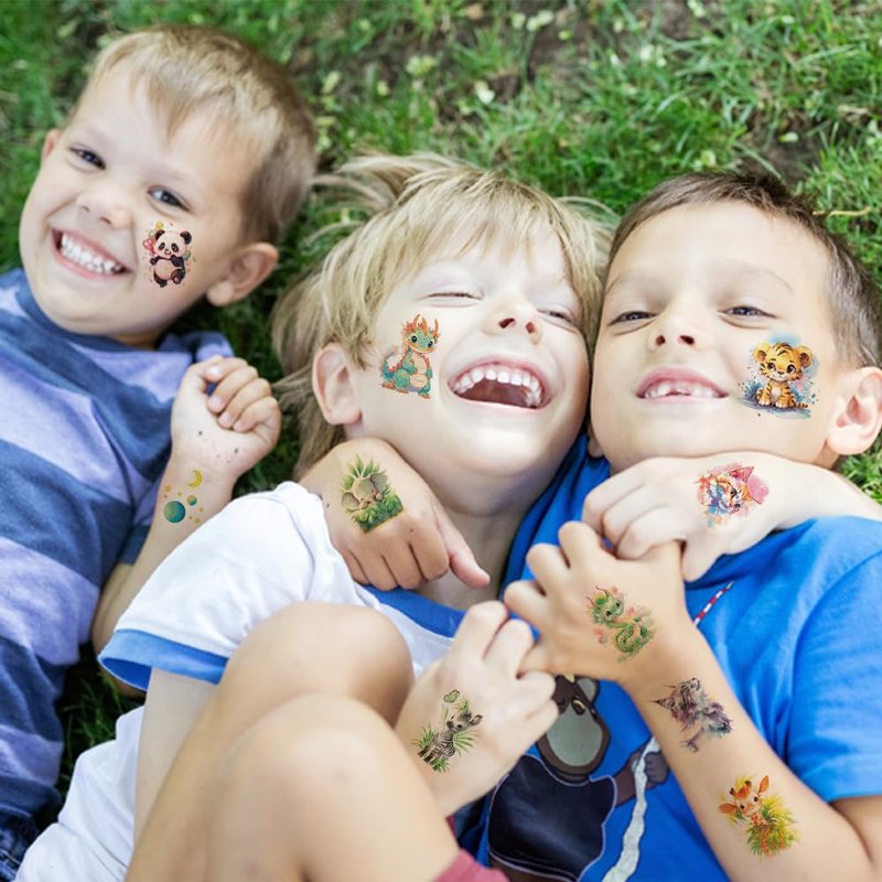 - ❤️【More Safety & Healthy Choice】These animals temporary tattoos are made of high quality safety and green paper, Non-allergenic, Non-toxic and totally safe for your kid's skin. Simply wet the tattoo with water and stick transferred them onto your body, hands, faces and arm you like, Tattoos will last from 3 to 5 days.
