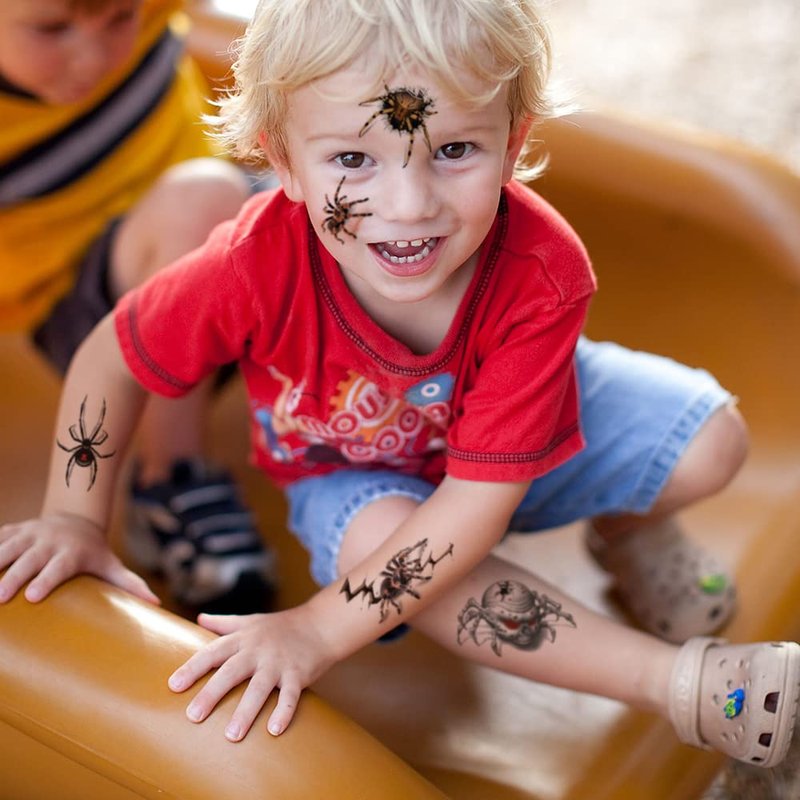 - 🎁【Halloween Spider Theme Temporary Tattoos】Halloween themed tattoos can helps to add festive, mood that belongs to Halloween and winter thus to make your party attractive and interesting; both boys and girls will like them.