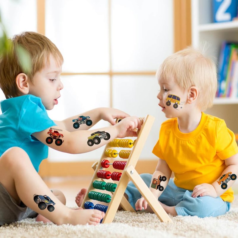 - 🎁【Value Monster Truck Tattoos Party Accessory for Kids】Popular hit with the kids. These monster truck temporary tattoos are perfect for a party! You can choose the pattern you like and create your own style. Great for birthday party, truck theme party, children's day party gifts, Halloween, Christmas, classroom rewards, etc. You can apply them to your body or some smooth objects, for example, glass, stationery, paper, crafts cups, cabinet, bottle.