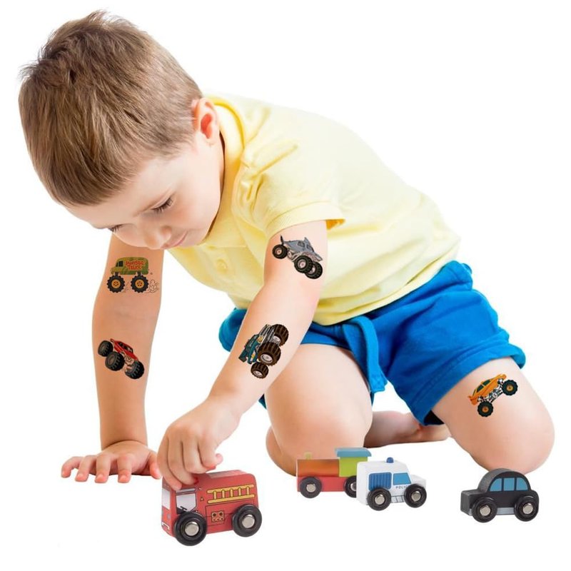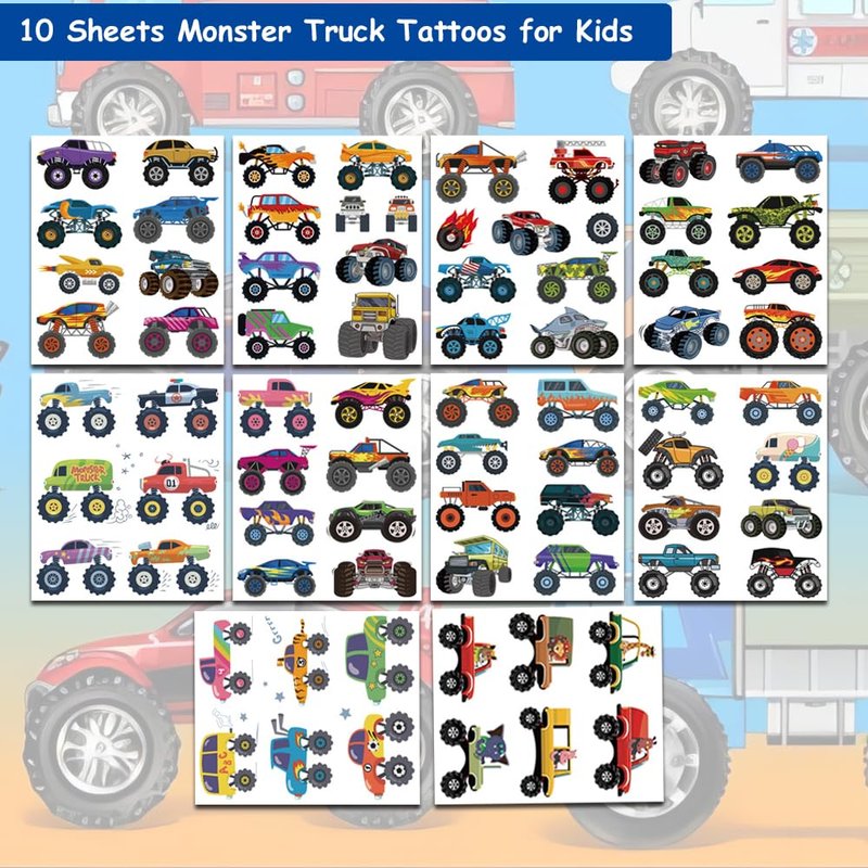 - 🎁【Monster Truck Themed Tattoos for Kids】Colorful monster truck tattoos for kids, Use them as party favors and your kids will love. Perfect for monster truck themed. party, birthday activities, school reward and other party events. They will be your kids'favorite small gifts.