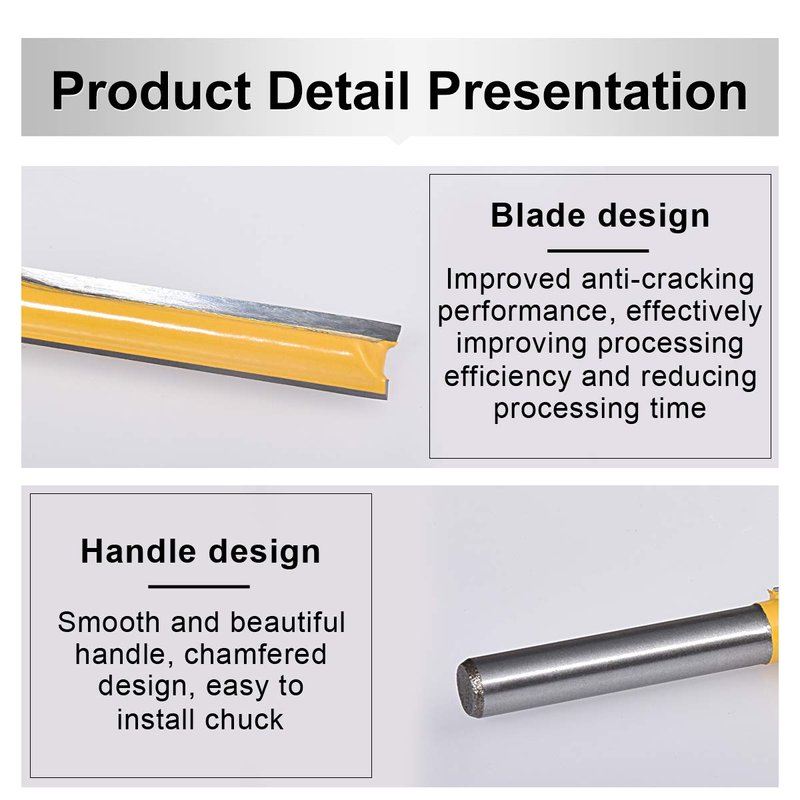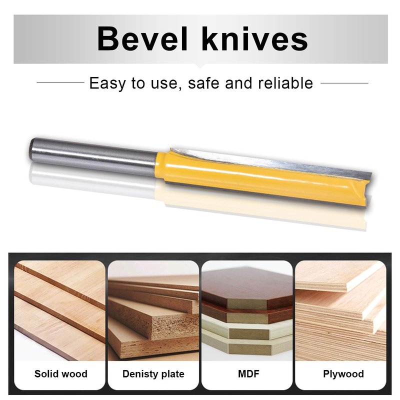 - [Multi-purpose Use] The straight flush trim router bit is used for trimming or deburring for wood surface. And can't be use use cutting wood or drilling hole, it may be bent. The carbide router bits are suitable for all range's router such as handheld router and table router.