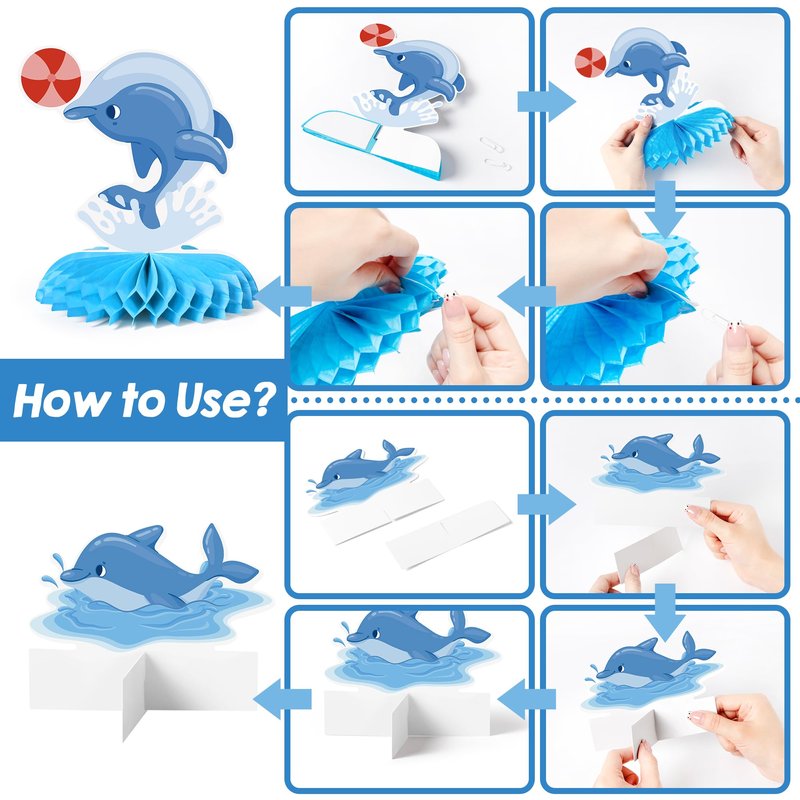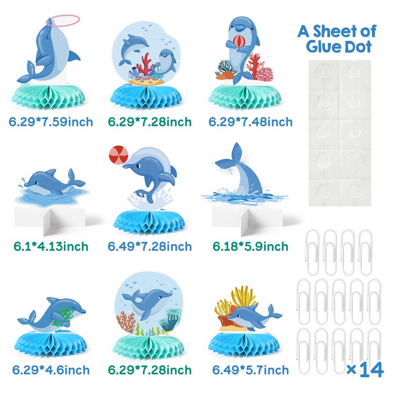 - Complete Set: Includes 9 pieces of dolphin themed party decor - 7 honeycomb centerpieces and 2 standing cross centerpieces for a dynamic table arrangement.