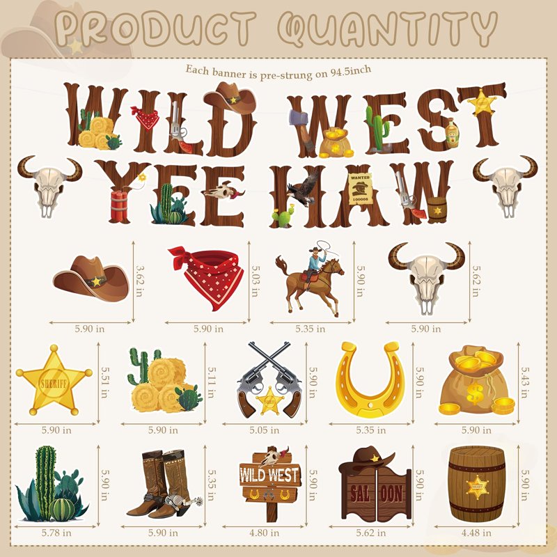 - Applicable Occasions: These party decorations are perfect for western theme party, wild west theme birthday party, children's birthday cowboy party, birthday party, western birthday party, cowboy birthday party, etc. to add charm. These decorations will be a perfect complement. They can be used on porches, ceilings, kitchens, doors or walls to add theme and fun to the party