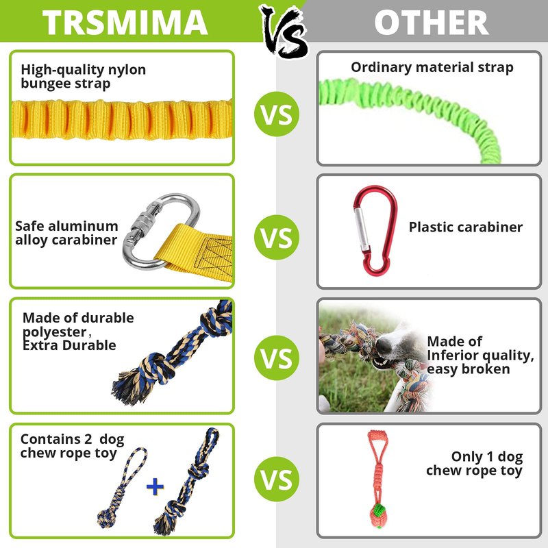 - 🐶Durable & Safe Design: The material of bungee strap is sturdy, made from high-quality nylon. We covered it with polyester fiber braid to prevent the dog from rupturing the leash due to pulling. Keeping the rubber band in the air can protect it from canine teeth.We all love pet