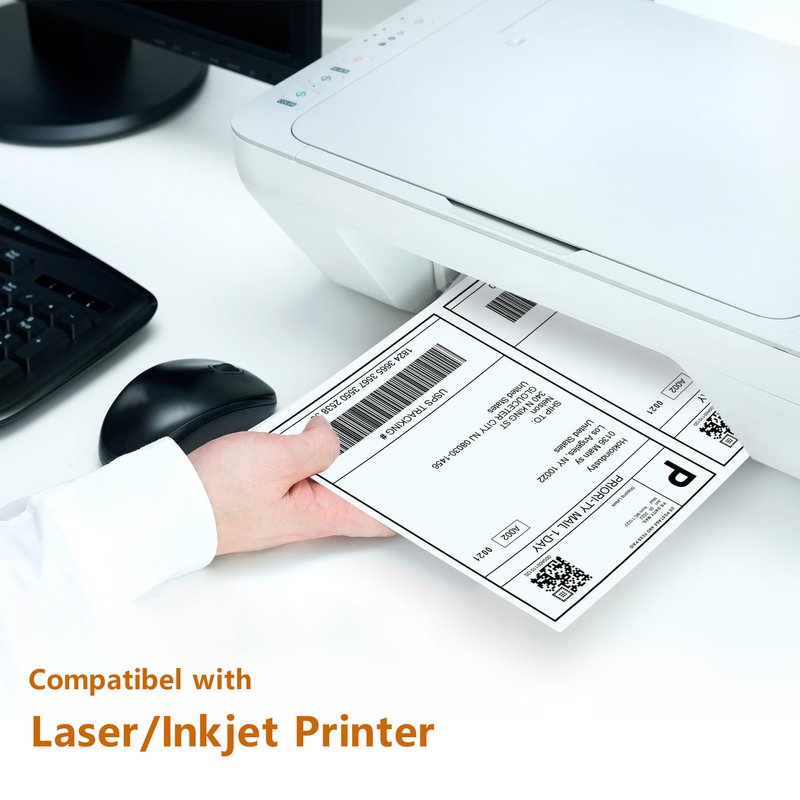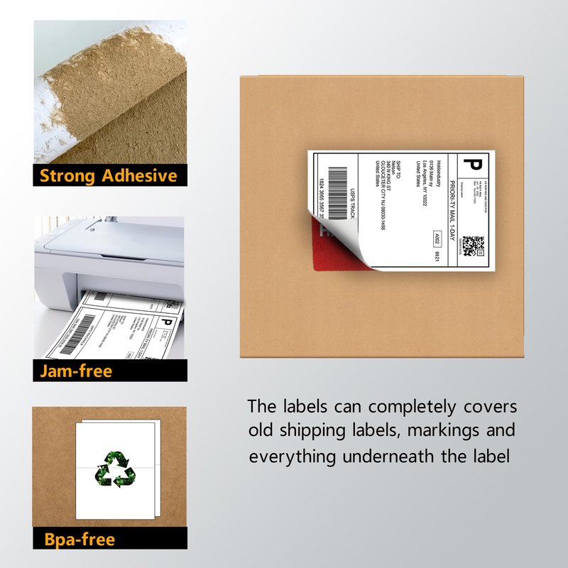 - 【Specification】Label size: 8.5" x 5.5",Sheet size: 8.5" x 11". 2 Labels per Sheet, Totally 100 Sheets , 200 Labels.