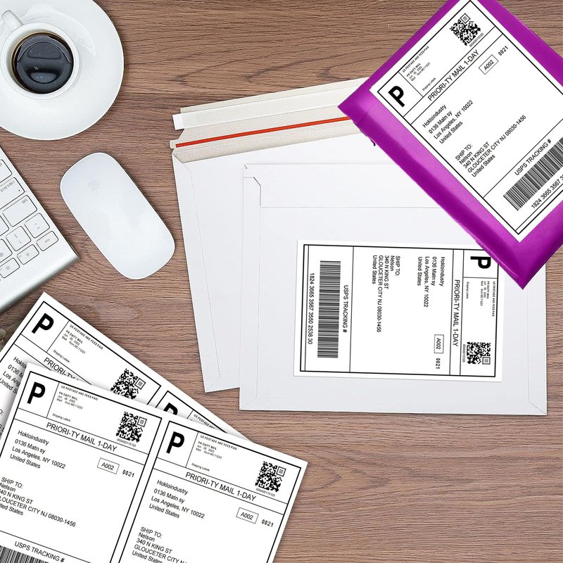 - 【High Quality】High quality half sheet labels with permanent adhesive,Clear print quality,NO jam,Easy to peel off.HokLoindustry shipping labels can be firmly attached to storage boxes,packages,galss bottles, plastic Containers,bubble bags,envelopes.