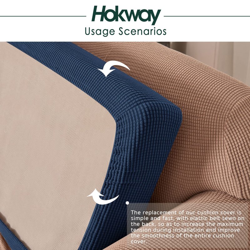 Hokway Stretch Couch Cushion Slipcovers Reversible Cushion Replacement Slipcovers Sofa Cushion Covers(Dark Blue, 2)