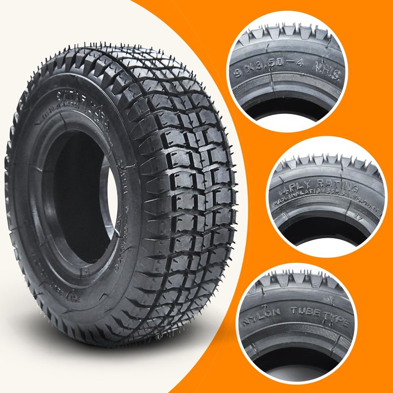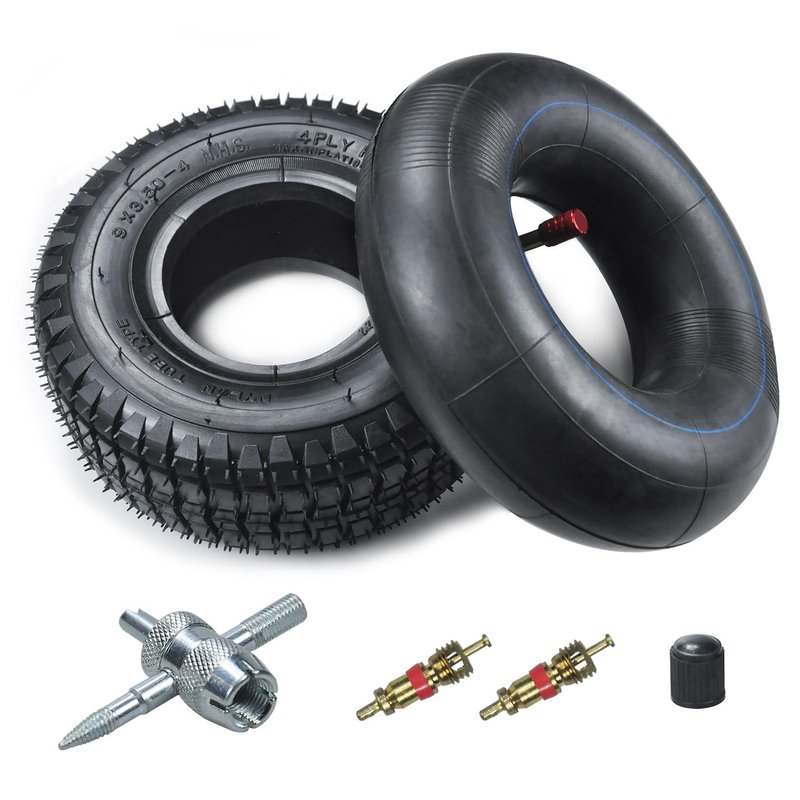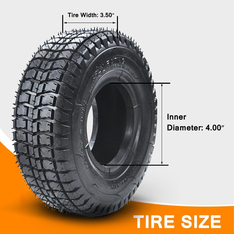 - Size —Tire and inner tube replacement fits vehicle with 4 inch rim, and also compatible with 9"x3-1/2" tire.