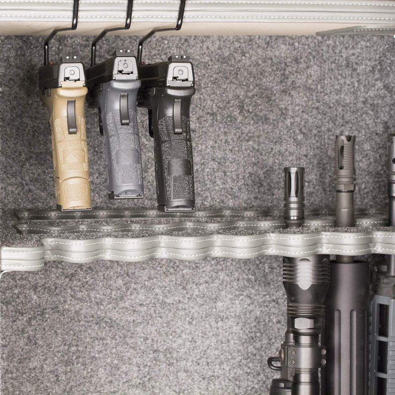 - Use the bottom of the shelf as well! GAIN SPACE in your safe, closet, or desk for more pistols revolvers or handguns