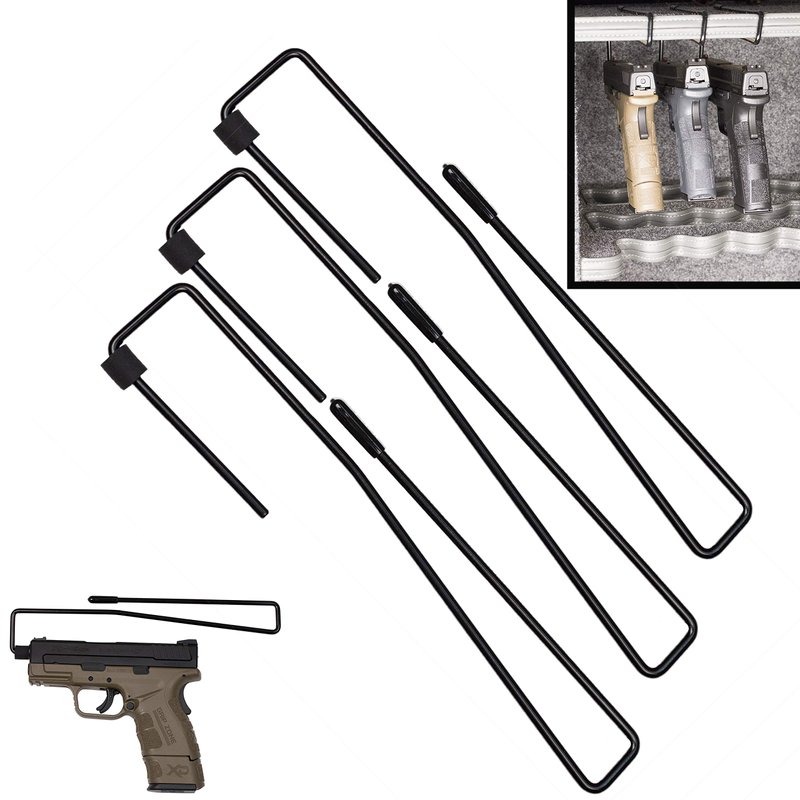 Hold Up Displays Pistol Hanger Gun Safe Shelf or Bookshelf Mounted Handgun Storage, HD84 Black (3 Pack)