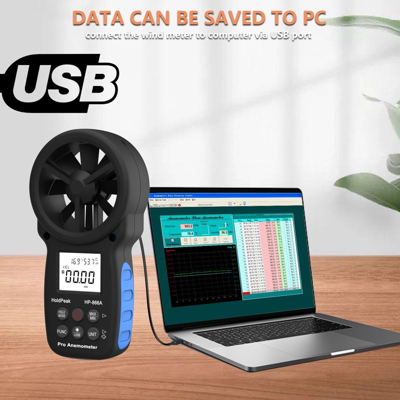 * USB PORT AVAILABLE : Compared with our 866B anemometer, this new 866A-black anemometer provide a more convenient USB Port.