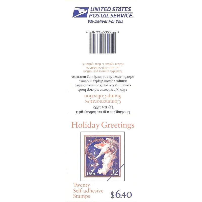 HOLIDAY GREETINGS CHRISTMAS ANGEL Pane of 20 x 32¢ US Postage Stamps 1995