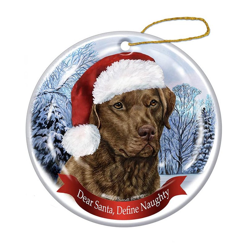 Holiday Pet Gifts Chesapeake Bay Retriever Santa Hat Dog Porcelain Ornament