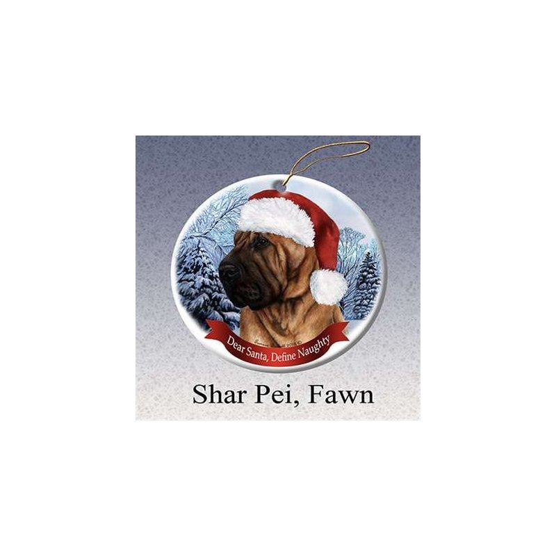 Holiday Pet Gifts Shar Pei, Fawn Santa Hat Dog Porcelain Christmas Tree Ornament