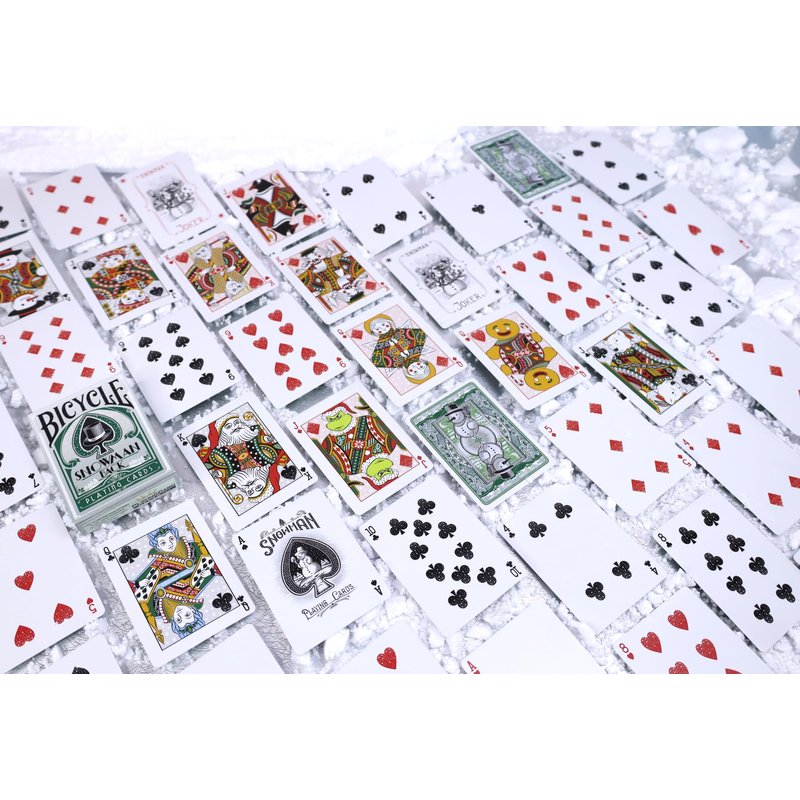 Holiday-Themed Snowman Bicycle Playing Cards Set of Decks - Winter Carnival Red & Green for Christmas Card Games & Festive Poker Nights
